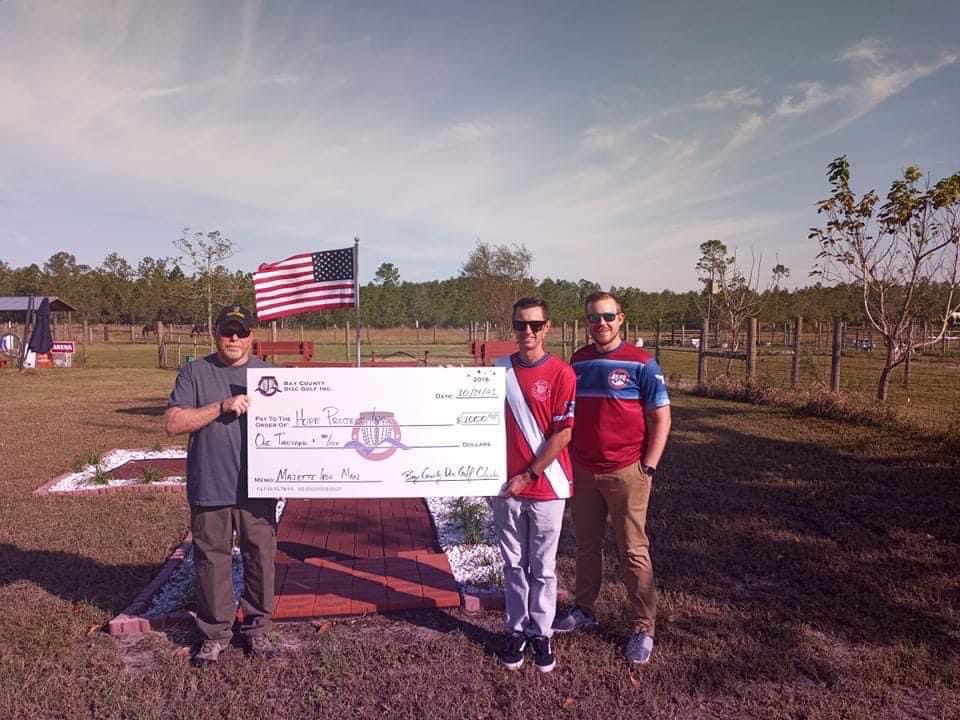 The HOPE Project specializes in equestrian therapy for veterans who are suffering from PTSD and other mental health issues. The HOPE Project is not limited to that, also working with our partner Gulf Coast Children's Advocacy Center and many other local charities to maximize their impact. They have community events and bring the horses out to local venues for children as well. Bay County Disc Golf Club is happy to work with HOPE Project Inc. and support them with our annual Majette Iron Man event each July.